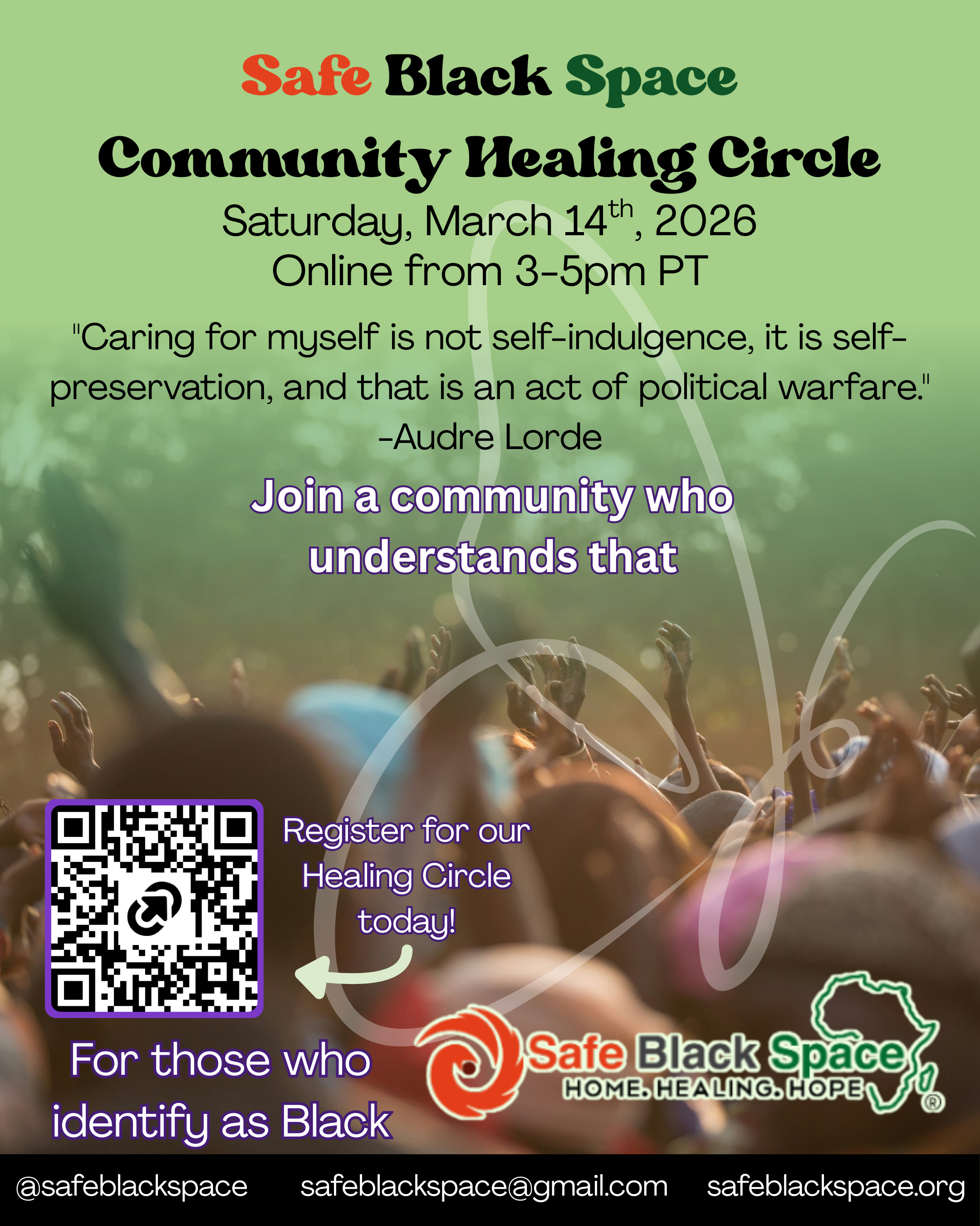 Safe Black Space Community Healing Circles - Monthly ONLINE 2nd Saturdays 3:00-5:00pm PT